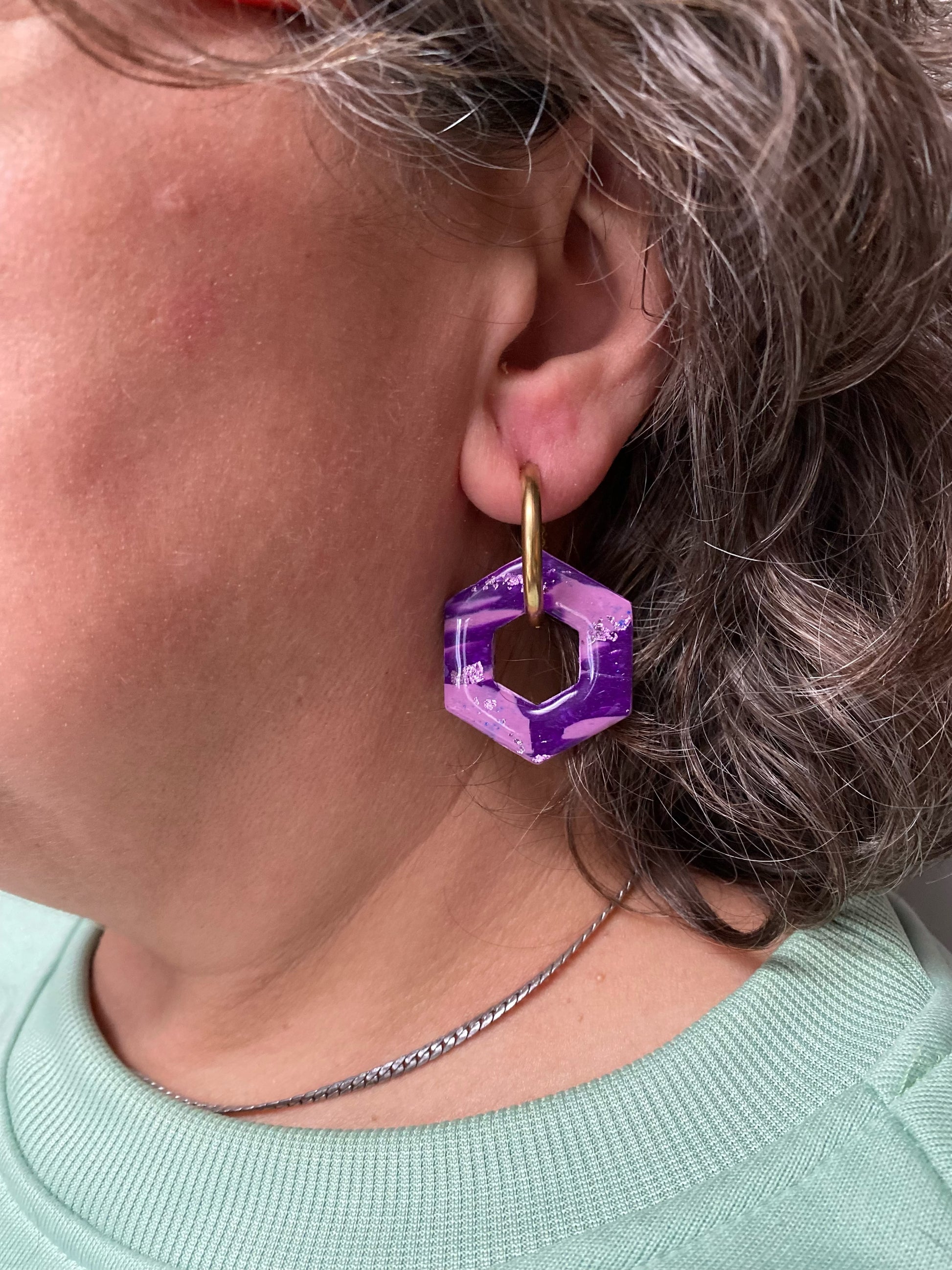 Ces pampilles hexagonales sont compatibles avec tes créoles Doli M Bijoux.